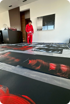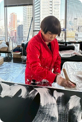 世界的デザイナー・コシノジュンコ氏が描いた花火デッサンを、花火師が完全再現。