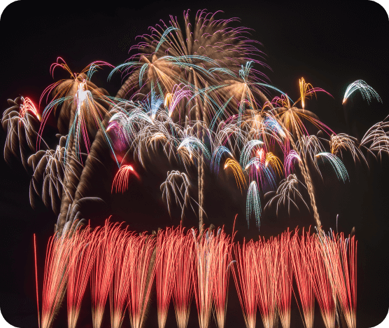 音楽や演出意図に合わせ、打ち上げ場所とタイミングを